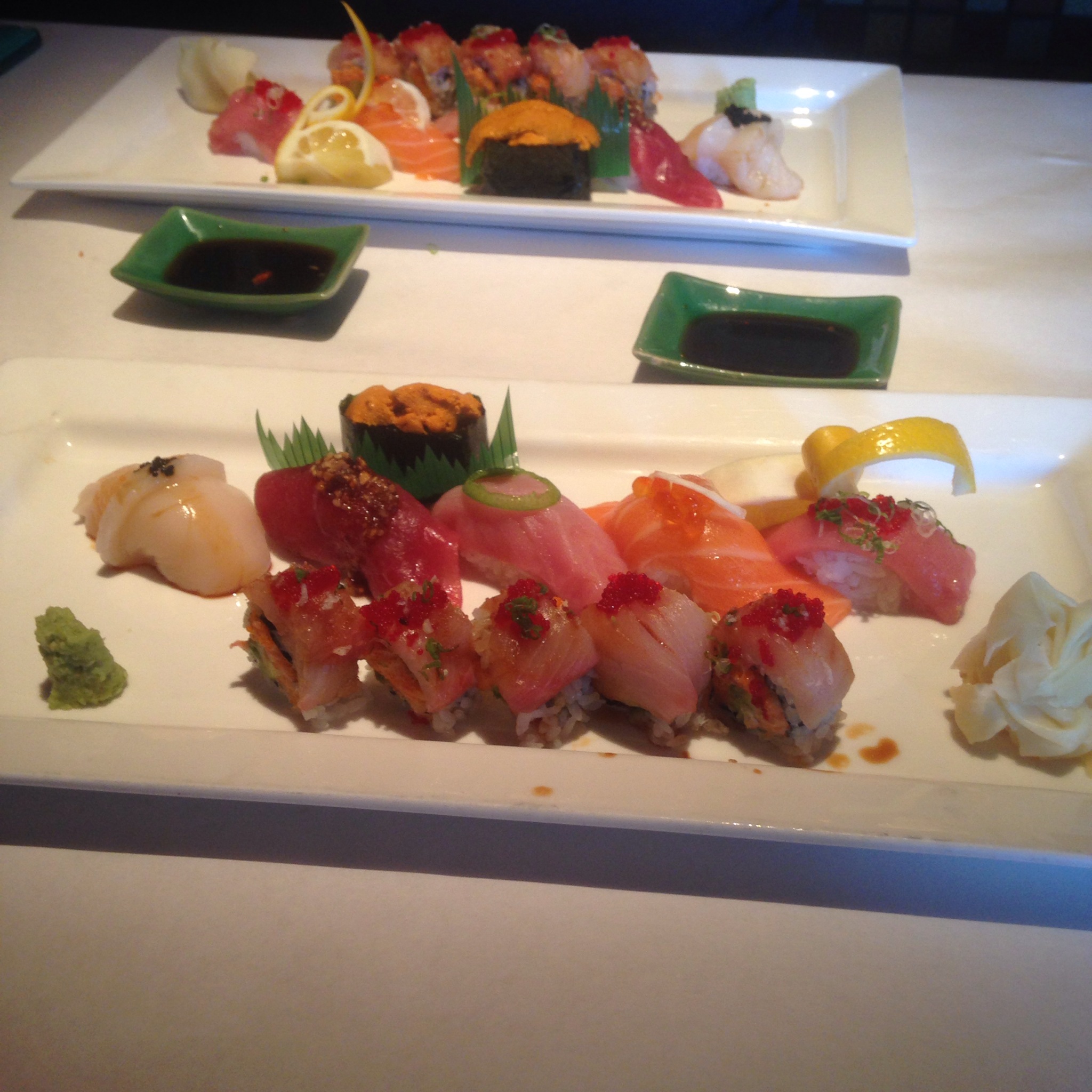 At this point we were starting to get full, but the food kept on coming. Spicy tuna crunch rice was next on the roster. Last time I had similar dish to this was at Nobu 57 in the city, which ironically was another free meal I had with Jen (thank you pharmaceutical reps). This dish was pretty good. Even though the crunchy rice did not have enough flavor for me, the tuna was flavorful and the freshness from the seafood with the crispy crunchy rice was a great balance and taste for the palate. The scallion and masago gave the tuna it’s x factor. Dip the whole thing in soy and it was perfection.