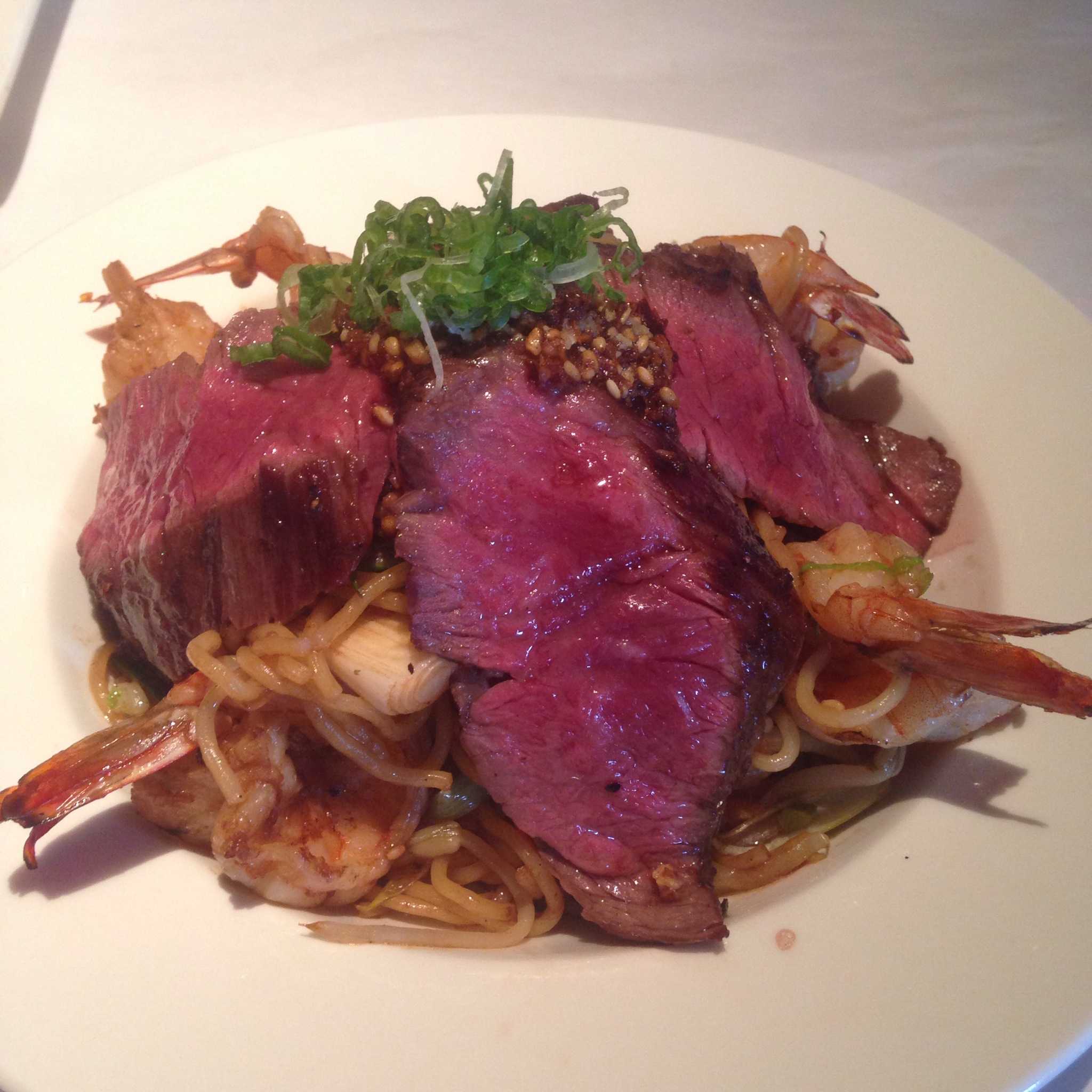 After the sushi we were pretty sure the meal was over, but nope not the case. At this point Jen looked like she was going to throw up. I was full, but hey free food, bring it on. Next we had the yakisoba pan noodles with beef and shrimp. At first I saw the meat and it was pink and I though “ew,” but Jen apparently eats her meat like this on the regular and convinced me that it was good. She was right. I normally like my meat done medium well, but this meat was tender and melt in your mouth delicious. The flavor of the noodles with the beef and shrimp was amazing. This was the perfect last dish and Jen was really upset that she was so full and could not really enjoy it. Her loss. G-d bless my bottomless pit stomach.