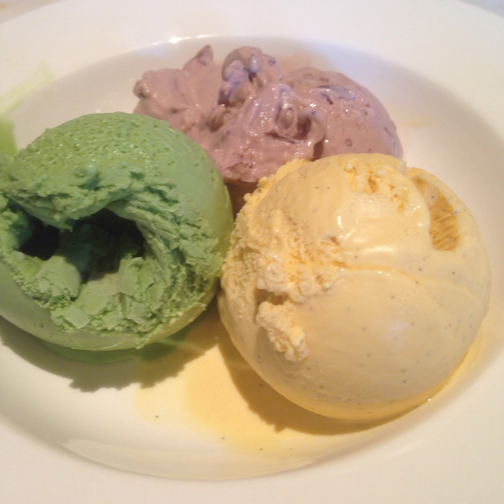To cleanse our palate at the end of the meal and to finally end this feast, we had the most basic dessert one could have… ice cream. However, there was nothing basic about it. We had green tea, black cherry and French vanilla ice cream and it was the perfect ending to an amazing meal.
